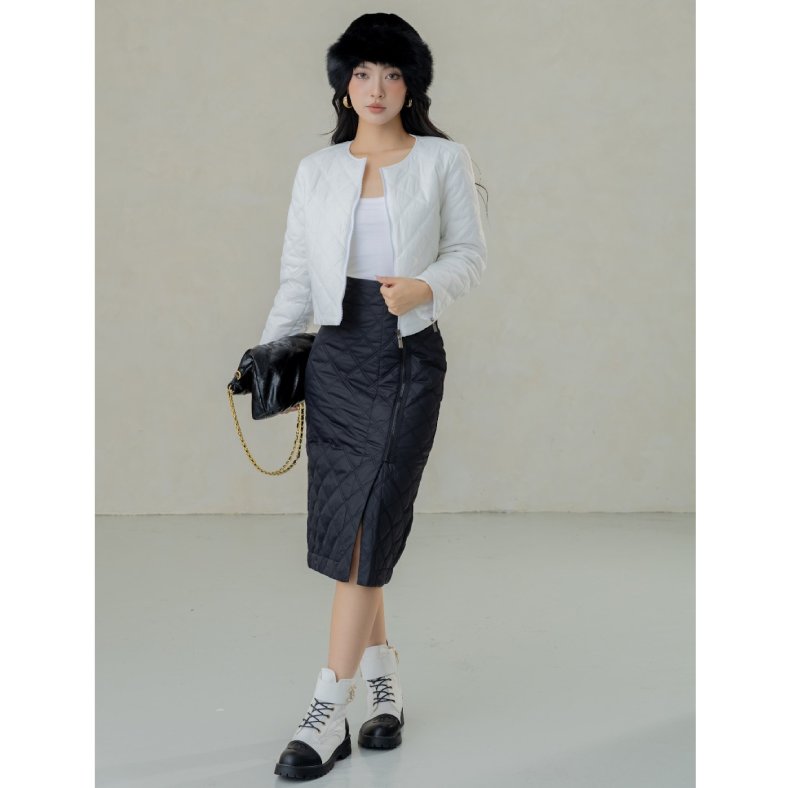 Áo phao dáng ngắn phối với chân váy chữ A hoặc váy xòe ngắn là lựa chọn trẻ trung, năng động. Set đồ này giúp bạn thoải mái vận động và tạo sự nổi bật trong đám đông. Bạn có thể mix áo thun bó sát bên trong áo phao và hoàn thiện outfit bằng boot cao cổ hoặc sneaker. Đây là cách phối lý tưởng cho những buổi dạo phố, gặp gỡ bạn bè hoặc đi chơi cuối tuần.