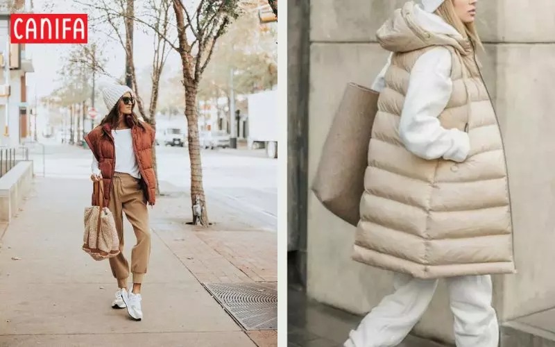 - Áo phao gile: Loại áo phao không tay hoặc lửng, thoáng và nhẹ. Thích hợp mix với áo len, hoodie bên trong và quần jeans, jogger. Gile giúp giữ ấm phần thân chính nhưng vẫn linh hoạt vận động.