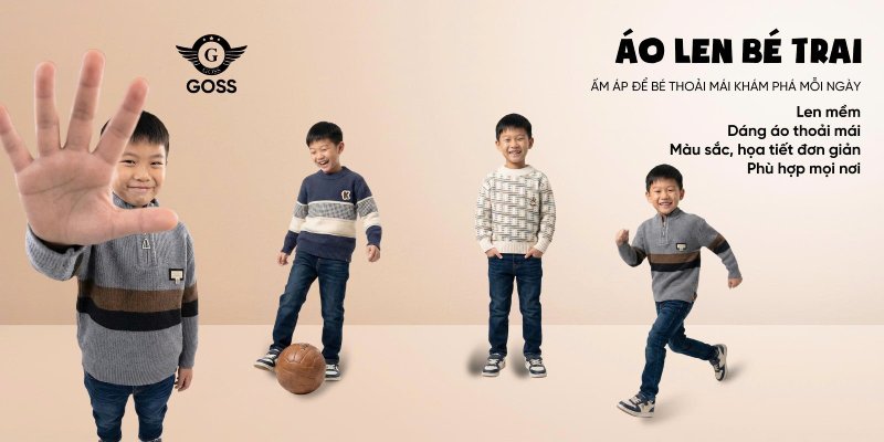 Với thiết kế đa dạng, chất liệu len mềm mại và form dáng dễ mặc, các mẫu áo trong danh sách 10+ mẫu áo len bé trai giúp bé thoải mái khám phá mỗi ngày là lựa chọn phù hợp cho bé trong mùa thu - đông. Mỗi sản phẩm đều hướng đến sự thoải mái, an toàn cho làn da và thuận tiện khi vận động hằng ngày. Nếu phụ huynh đang tìm kiếm địa chỉ mua áo len bé trai đẹp, chất lượng và giá hợp lý, Thế Giới Thời Trang GOSS là nơi cung cấp nhiều mẫu áo len bé trai uy tín, giúp bố mẹ yên tâm lựa chọn trang phục ấm áp cho bé.