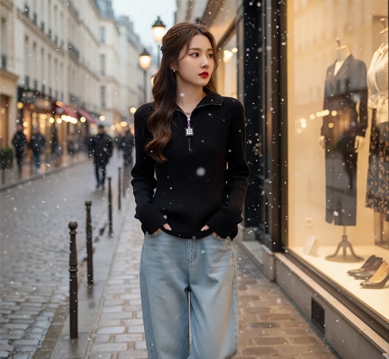 Áo len dài tay có khóa kéo ở cổ
