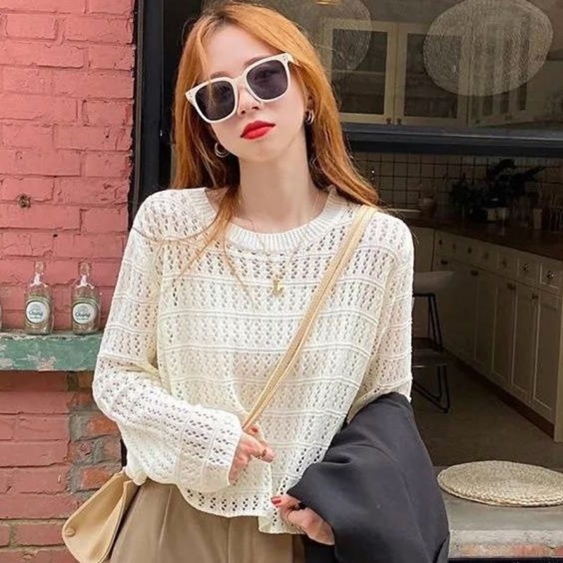 Áo len dài tay đan lỗ