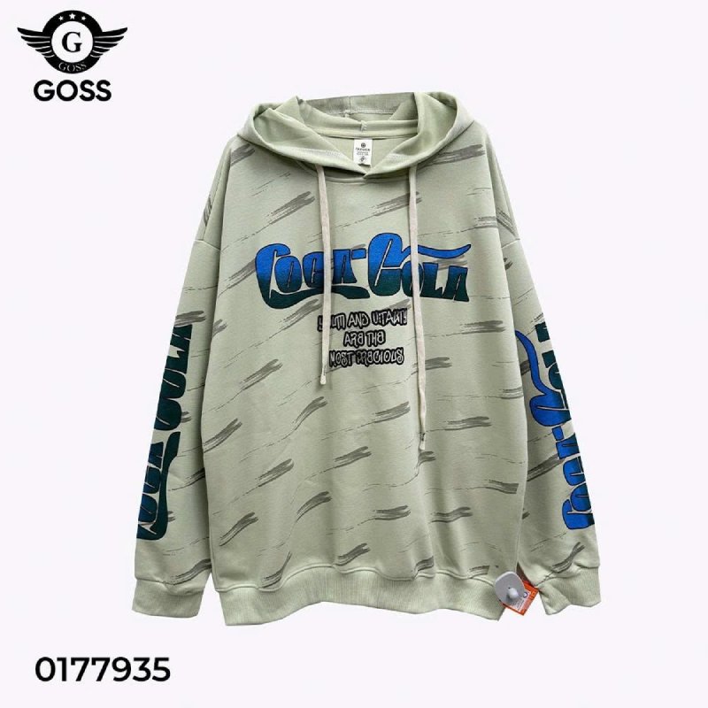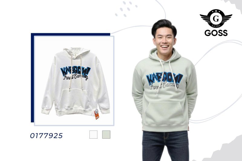 Mẫu hoodie GOSS 0177932 mang phong cách streetwear hiện đại với họa tiết chữ in lớn phối màu xanh dương trên nền trắng kem. Các chi tiết loang màu tạo hiệu ứng thị giác nhẹ nhàng, giúp áo nổi bật nhưng không quá phô trương. Chất liệu nỉ cotton pha cao cấp, mềm mại, giữ ấm tốt và ít xù lông. Form oversize tạo sự thoải mái khi vận động, phù hợp nhiều dáng người. Mũ liền thân, bo tay và bo gấu được hoàn thiện chắc chắn, giúp áo bền và dễ mặc trong sinh hoạt hằng ngày.