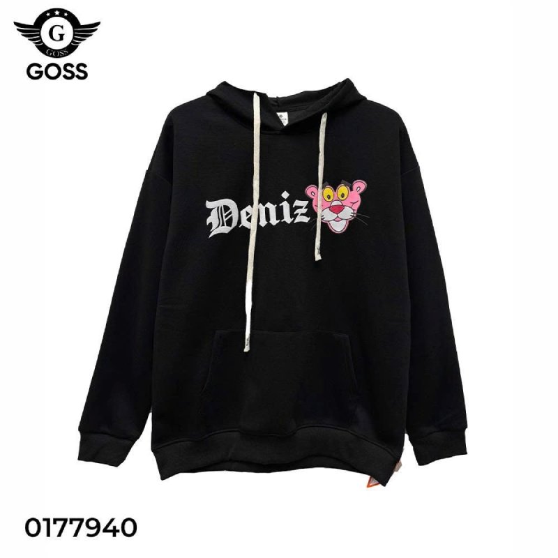 Áo hoodie GOSS 0177940 mang phong cách tối giản trên nền đen chủ đạo, kết hợp chữ “Demiz” font gothic và hình hồng báo màu hồng tạo sự đối lập thú vị. Thiết kế vừa cá tính vừa dễ mặc, phù hợp nhiều phong cách. Chất liệu nỉ cotton pha dày vừa, mềm và bền, ít nhăn và xù lông. Form oversize giúp người mặc thoải mái trong mọi hoạt động. Mũ trùm có dây rút sáng màu tạo điểm nhấn, túi trước và bo tay chắc chắn tăng tính tiện dụng.