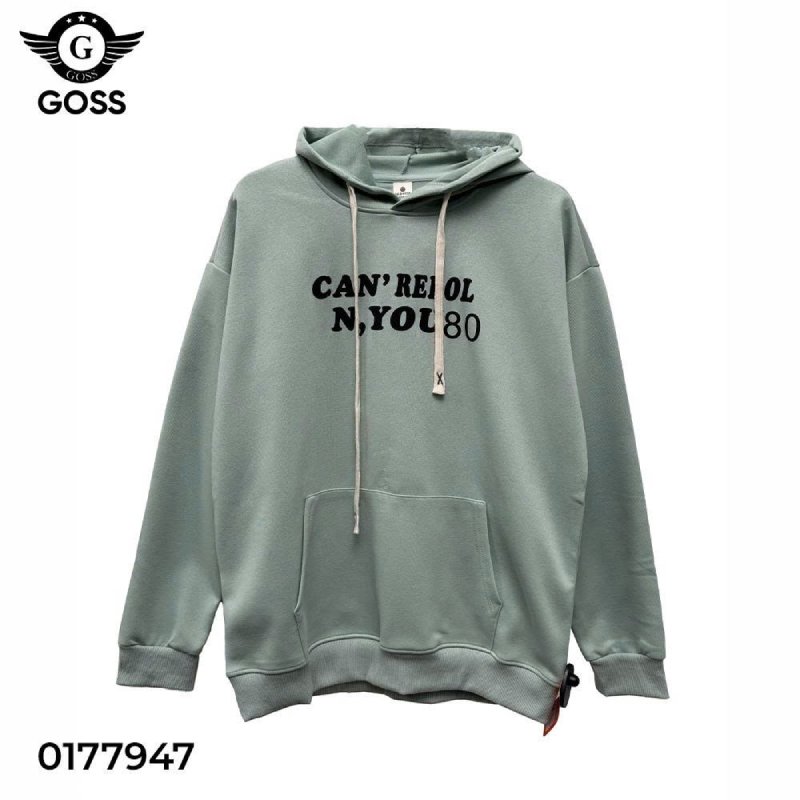 Áo hoodie GOSS 0177947 sở hữu gam màu xanh rêu nhạt thời thượng, dễ phối đồ và phù hợp nhiều phong cách. Thiết kế chữ in trước ngực tạo điểm nhấn nhẹ, mang hơi hướng streetwear hiện đại. Chất liệu nỉ cotton pha dày vừa, mềm và giữ form tốt. Form áo rộng rãi giúp người mặc thoải mái khi vận động. Mũ trùm liền thân, túi trước và bo tay được hoàn thiện kỹ, phù hợp mặc đi học, đi chơi hoặc dạo phố.